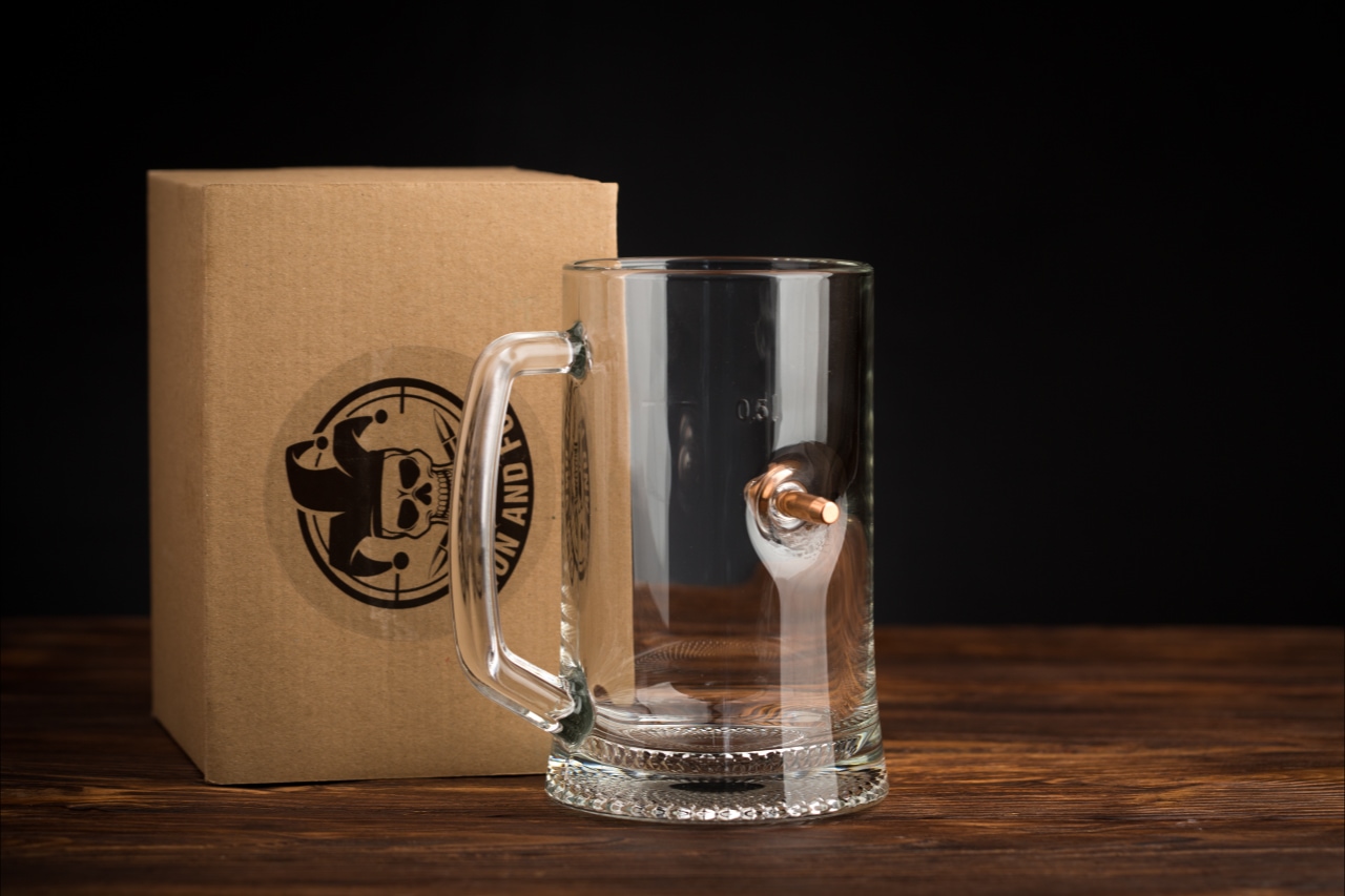 Этот бокал станет отличным подарком для любого мужчины или девушки, которые ценят уникальность и оригинальность. В бокал врезается пуля. Есть также бокалы без ручки с пулей, с футбольным/баскетбол. мячом, мячом для гольфа, блесной и тд.